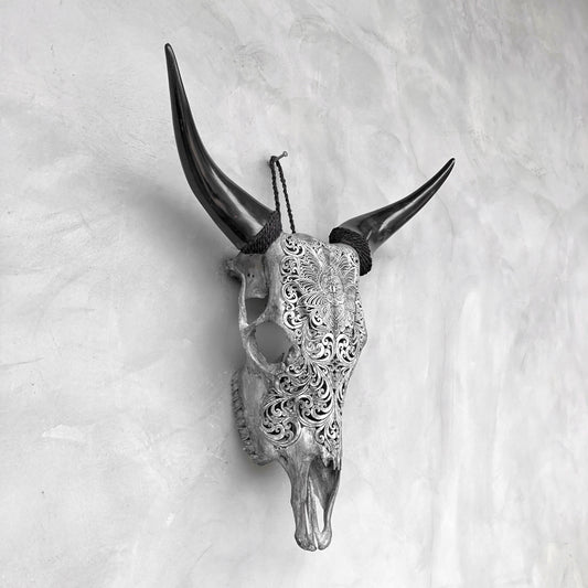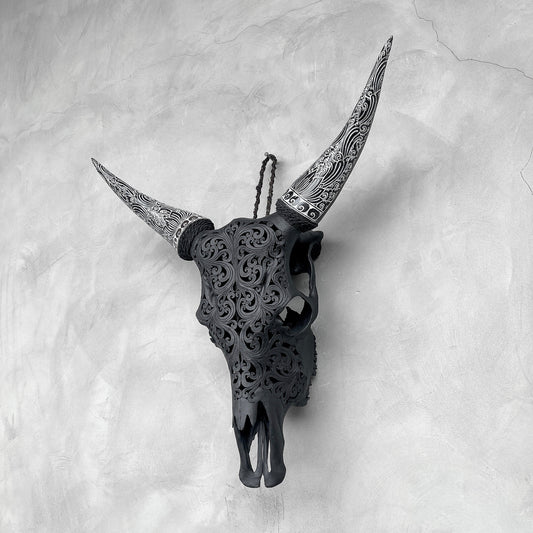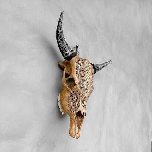 Rebelle rustique | Crâne de Vache Sculpté à la Main