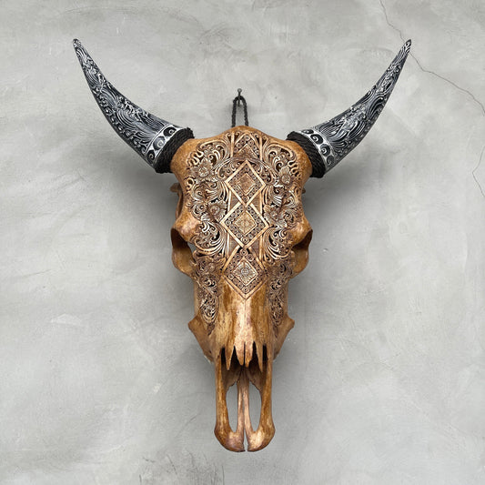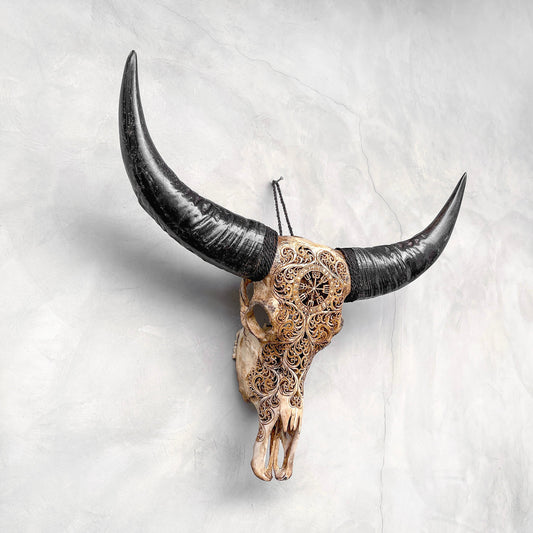 Diamant Ketupat | Crâne de Vache Sculpté à la Main
