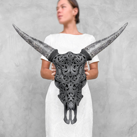 Trisula mythique | Crâne de Buffle Sculpté à la Main